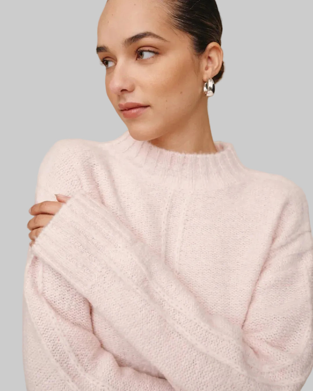 The Cozy Sweater is a relaxed, effortlessly chic knit with subtle detailing—perfect for everyday layering with an elevated finish.